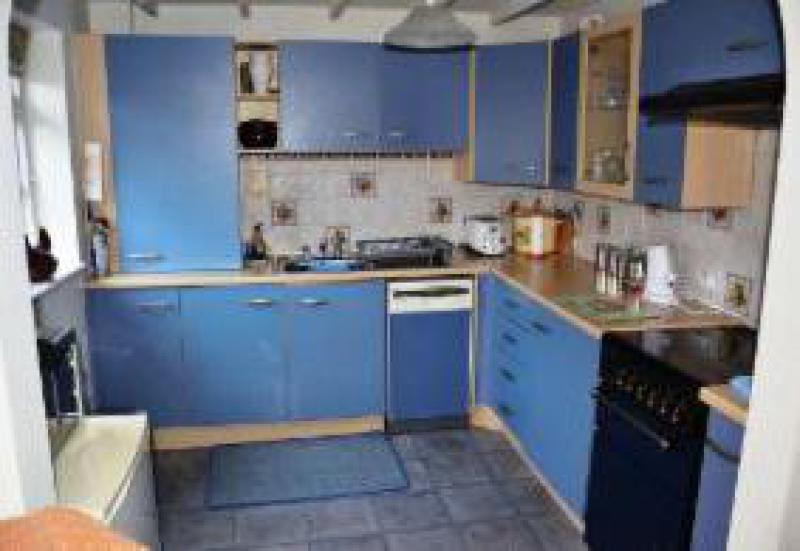 a beamed kitchen, fully equipped with gas cooker, fridge, washing machine, microwave and dishwasher. The kitchen is arched into the lounge / dining room, which is comfortably furnished complete with